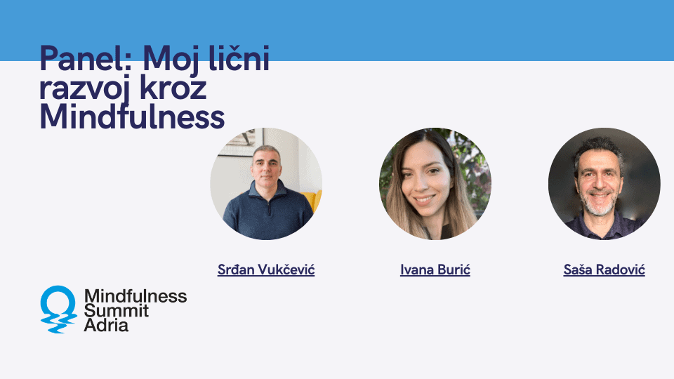 | 18:35 - 19:25 | Panel: Moj lični razvoj kroz Mindfulness (Ivana Burić, Saša Radović i Srđan Vukčević) (Q&A) |